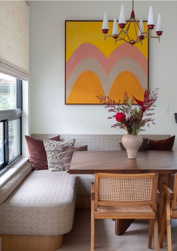 There’s also a flexible main-floor living space that can function as a formal dining room, private office, or additional living area. The breakfast nook features a custom dining table designed to expand and comfortably seat 8–10, making it a natural gathering space for everyday life and entertaining.