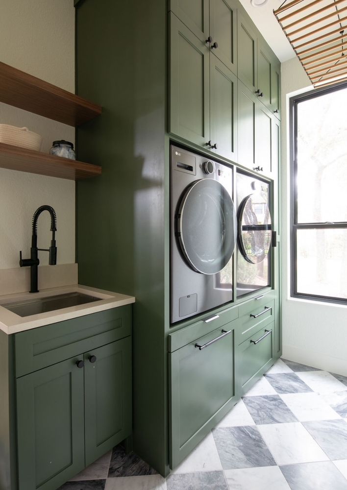 In addition to the main kitchen, a dedicated prep / butler’s kitchen was added, along with a custom mudroom with built-in cabinetry and a beautifully designed laundry room featuring hidden storage and integrated drying racks. Every space was planned, not just refreshed.