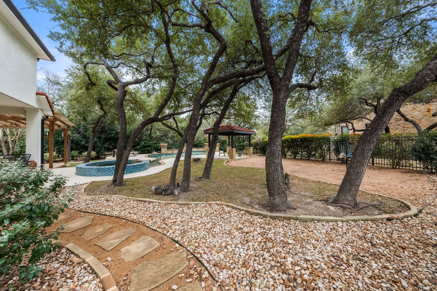 Upstairs is a rare Steiner Ranch configuration: three bedrooms, each with its own full bath, plus both a dedicated theater room and a separate game room—an uncommon find that adds real value and versatility.