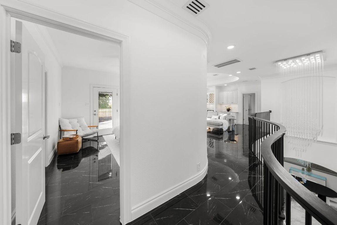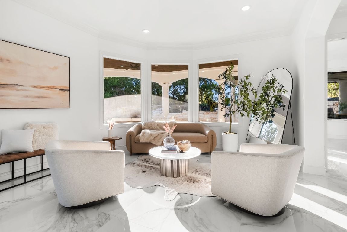 Located within the gated UT Golf Club section of Steiner Ranch, this fully remodeled home combines sleek modern design, advanced smart-home technology, and thoughtful livability across a rare half-acre lot. Every surface has been elevated — from the new porcelain tile floors and waterfall-edge countertops to designer lighting and a curved staircase that anchors the bright, double-height entryway.